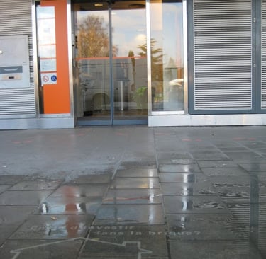 El mejor lugar para colocar grafitis inversos es donde la gente pasa la mayor parte del tiempo. Lugares obvios como paradas de autobús, estaciones de tren, paradas de taxis, tiendas, bares, restaurantes, locales de comida rápida, cines, etc. Las rutas peatonales de los usuarios también son buenas ubicaciones, tanto para ir como para volver de las estaciones de transporte público.